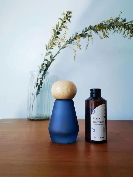 朦胧的磨砂玻璃瓶身一改无火香薰透明瓶身的刻板印象,将日光柔和,圆润的造型线条又平添一份可爱、温暖。纹理明显的球形瓶口,又增添一份灵动的韵律感与生气。香薰途经实木散发出来,更加温润棉软。