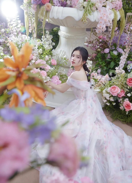 灿烂、迷人的花朵深受女孩们的喜爱,粉嫩的配色与绽放的鲜花相映成趣,带来清新、自然的春天气息。昨天现身活动现场的张婧仪身穿一袭粉色印花纱裙仙气缥缈,渐变的花朵偷偷藏匿于薄纱之中,氤氲出甜美的气息,搭配精美花朵编发,展现出少女独有的娇媚与温柔。