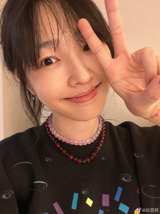 日常一点的卫衣,也能用串珠点缀,可以从色彩的协调方面出发。白百何选择的串珠项链要更大一点,chocker长度和锁骨链长度的叠搭,更显时髦。