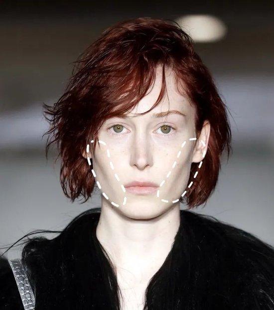 针对传统颧弓距离偏宽的中式骨相,其实可以采用“哪里突出在哪里上修容”的简单原则,试着把阴影打在颧骨、下颌骨等从正面看会比较突出的地方。