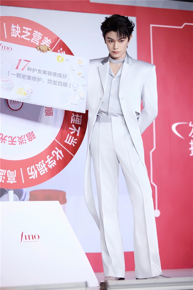 此外,他还特地带来了剧组护发好物——“fino芬浓小银弹发膜”,一颗浓缩17种护发精华,小巧便携+集中修护,更是满足消费者在不同场景中的护发需求,充分展现了卓越护发实力。随后,由FineToday中国区CEO、上海菲婷丝化妆品经营有限公司总经理濑户温夫先生、市场部VP周春芳女士、销售部VP 曹贞杰先生,fino芬浓品牌代言人丁禹兮先生共同按下汇聚fino护发 “能量”的启动装置,庆典瞬间被推向高潮。