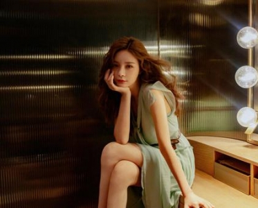 沈梦辰微卷长发配薄荷绿连衣裙 复古温柔大秀美腿